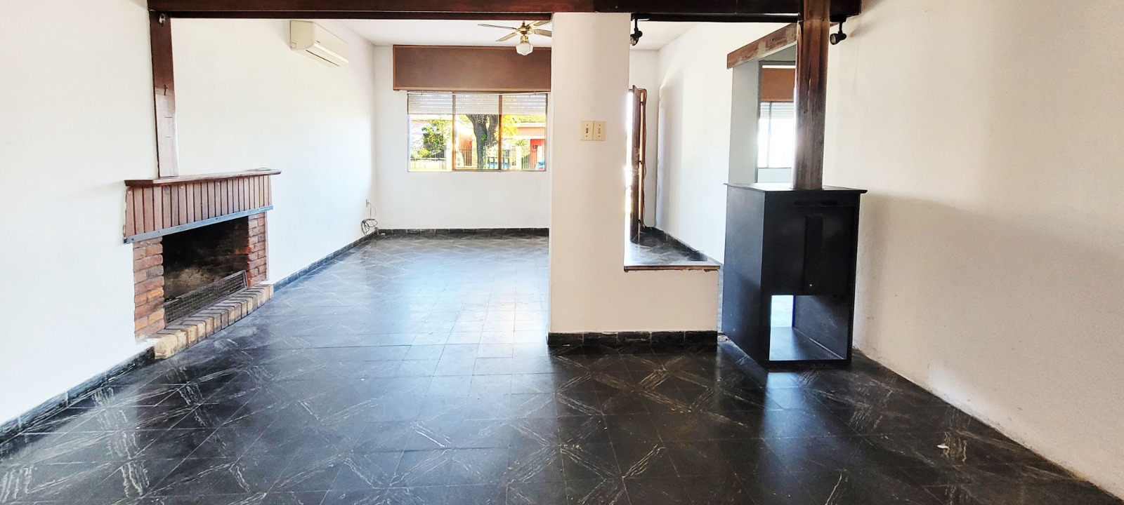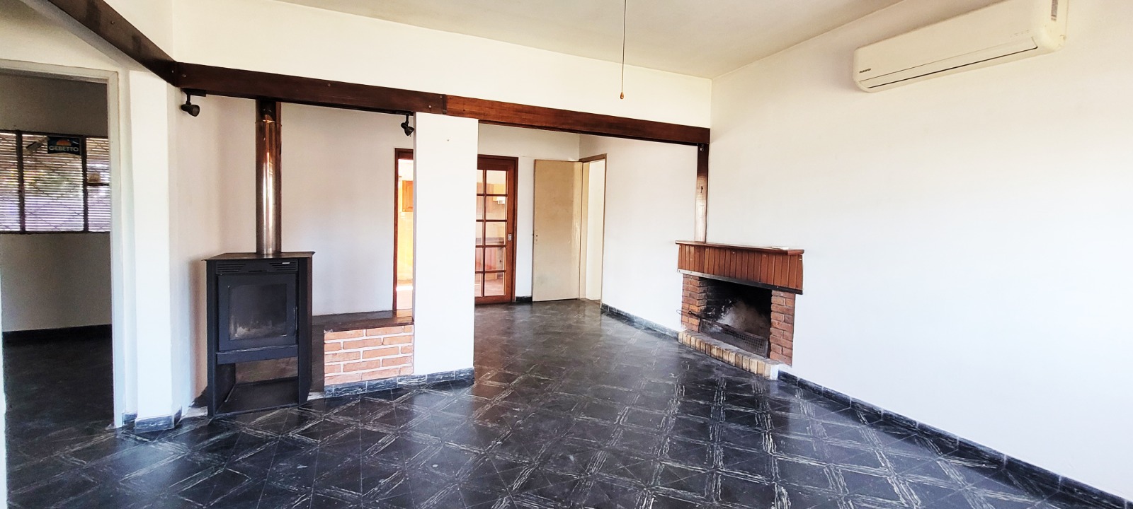 🔹Amplio living con estufa a leña, calefactor a leña y aire acondicionado